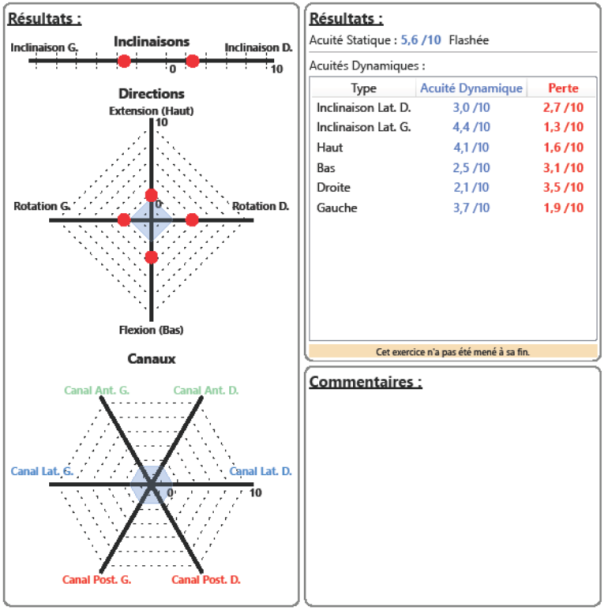 – Une mesure de la différence de vision, tête fixe et tête en mouvement, en relation directe avec les plaintes d’oscillopsie.