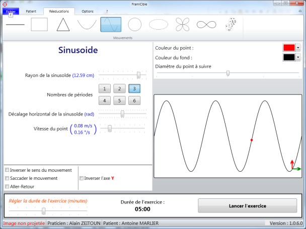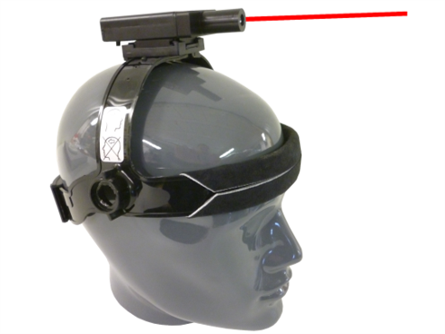 d’un casque léger sur lequel est fixé un pointeur laser. Cet appareil simple et léger permet de bien contrôler les mouvements de tête du sujet lorsqu’il doit suivre une cible avec sa tête ou avec ses