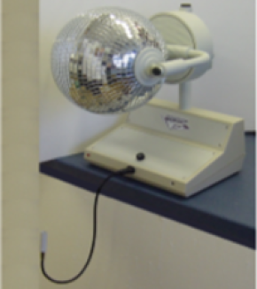 Ce stimulateur est constitué d’une boule à facettes réfléchissantes éclairée par une source lumineuse, réglable en intensité, en focalisation, permettant ainsi de varier la surface des tâches lumineuses réfléchies.
